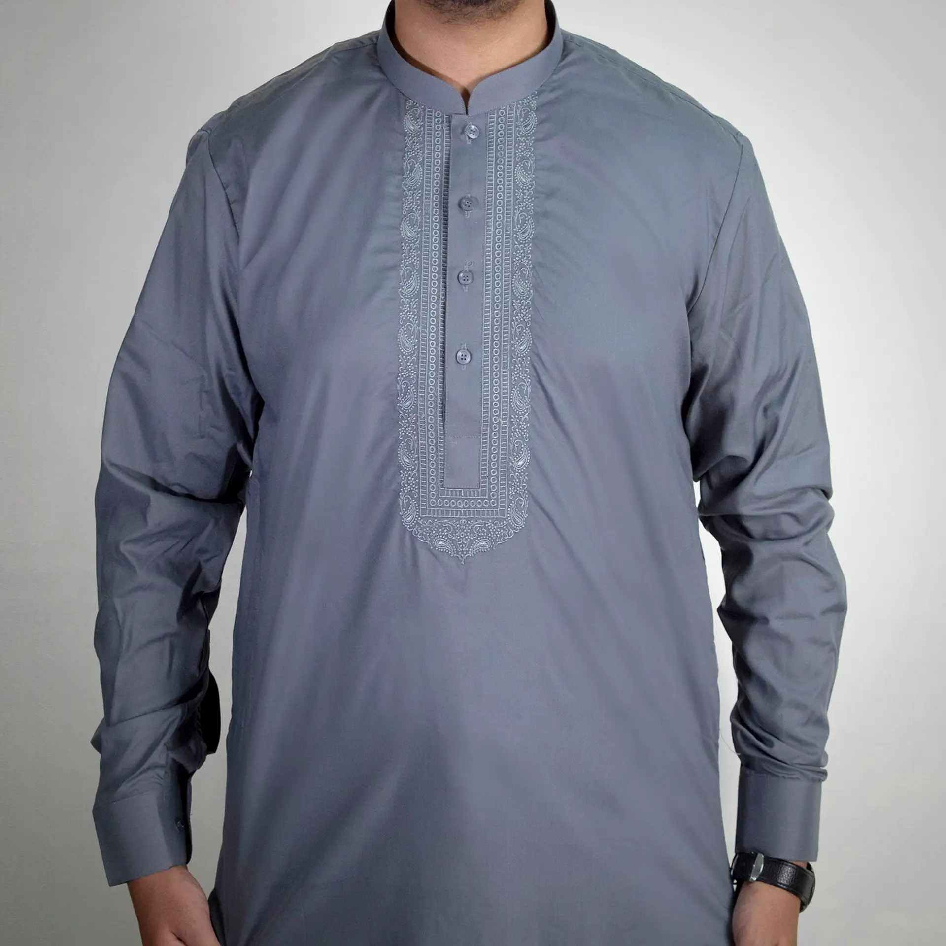 Sarwar Collection- Gray Embroidered Shalwar Kameez For Mens